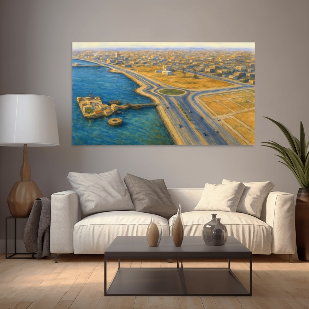 لوحة فنية رقمية عالية الجودة قابلة للطباعة (JPG 90×60 cm) تُجسّد مشهدًا بانوراميًا لكورنيش الدوحة في سبعينات القرن الماضي، بأسلوب digital realistic restoration art مستوحى من الأرشيفات العامة التي وثّقت التحول العمراني المبكر على الساحل القطري. • عمل فني مستلهم من صور أرشيفية عامة لكورنيش الدوحة القديم، أُعيد تخيّله بأسلوب realistic digital painting يمزج بين الامتداد البحري الأزرق ودفء الرمال الذهبية. • يظهر المشهد من زاوية علوية بانورامية تُبرز انحناءة الكورنيش، الدوّار المركزي، والطرق الهادئة التي كانت ترسم ملامح المدينة في بدايات نموها الحضري. • تتوزع المباني منخفضة الارتفاع في الأفق لتعكس بساطة العمارة التقليدية والانتقال التدريجي نحو التخطيط المدني الحديث في تلك المرحلة التاريخية. • حضور القوارب الخشبية التقليدية قرب الساحل يربط المشهد بجذور قطر البحرية، حيث كان البحر مصدر رزق وهوية قبل الطفرة العمرانية الكبرى. • التدرجات اللونية بين الأزرق الفيروزي والذهبي الصحراوي تمنح اللوحة طابعًا دافئًا يوثق زمنًا كانت فيه المدينة تتشكل بهدوء على ضفاف الخليج. تمت إعادة إحياء هذا العمل عبر تقنيات الذكاء الاصطناعي والترميم الرقمي مع الحرص على الحفاظ على الجوهر التاريخي للمشهد. قد تظهر بعض اللمسات الفنية الطفيفة الناتجة عن الإحياء الرقمي، مثل نعومة غير متجانسة في تفاصيل المباني البعيدة أو اختلافات دقيقة في السيارات والقوارب أو تأثيرات فرشاة رقمية واضحة في السماء والمياه. هذه السمات طبيعية في أعمال restoration art digital painting، ولا تؤثر على صدقية المشهد أو قيمته التراثية، بل تعكس عملية إعادة التخيل الفني وتمنح اللوحة طابعًا بصريًا معاصرًا بشفافية ومصداقية عالية. • مثالية لتزيين المكاتب، المجالس، الديوانيات، المنازل، وصالات العرض الفنية، حيث تضيف إحساسًا بالحنين إلى كورنيش الدوحة في السبعينات وتوثّق ملامح المدينة قبل تحولها العمراني الكبير. • متوفرة للطباعة بالمقاسات التالية: 90×60، 70×50، 60×40، 45×30 بالإضافة إلى A1–A4 لتناسب مختلف المساحات. كما يمكن طباعتها بمقاسات أكبر عند الطلب مع انخفاض طفيف جدًا في الجودة غير ملحوظ غالبًا عند العرض الجداري. تنبيه / Note تنبيه: هذا المنتج رقمي فقط، ستستلم ملفًا رقميًا عالي الجودة ولن يتم شحن أي منتج ملموس. Note: This is a digital product only. You will receive a high-resolution digital file. No physical item will be shipped.