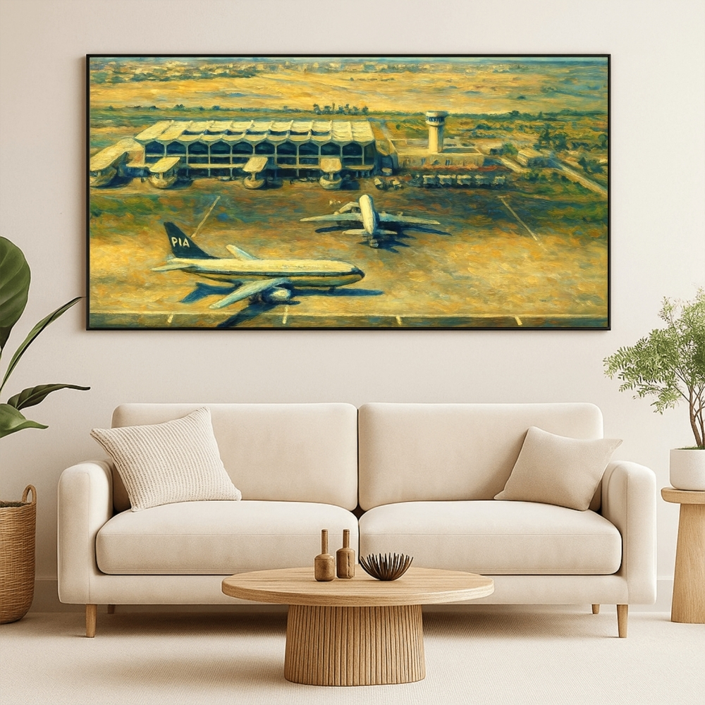 لوحة فنية رقمية عالية الجودة قابلة للطباعة (JPG 90×60 cm)، تُجسّد مشهدًا تاريخيًا نادرًا من مطار دبي القديم في منتصف القرن الماضي، بأسلوب digital restoration art و realistic digital painting مستوحى من الأرشيفات العامة. – لوحة فنية مستوحاة من public historical archives التي وثّقت البدايات الأولى للطيران المدني في دبي، أُعيد تخيّلها بأسلوب digital realistic restoration art يجمع بين التوثيق البصري والطابع الفني. – يُظهر المشهد مدرج المطار القديم مع طائرات كلاسيكية رابضة على الأرض، وبرج مراقبة بسيط، ومبنى الركاب بتصميمه الوظيفي المبكر، في تصوير يعكس مرحلة مفصلية من تاريخ الاتصال الجوي في الخليج. – الأجواء العامة تُبرز بساطة البنية التحتية، واتساع الصحراء المحيطة بالمطار، لتجسّد التحول من مدينة ساحلية صغيرة إلى مركز إقليمي ناشئ في عالم الطيران. – أسلوب الرسم يميل إلى oil-inspired digital painting، مع ضربات فرشاة واضحة وألوان دافئة تمنح المشهد طابع cinematic aviation heritage scene يستحضر روح الزمن والذاكرة. – تحتوي هذه اللوحة على لمسات فنية طفيفة من digital revival ناتجة عن عمليات AI-assisted restoration و digital painting، مثل اختلافات بسيطة في بعض تفاصيل الطائرات أو عناصر المباني، إضافة إلى ضربات فرشاة رقمية واضحة في الأرض والسماء. هذه اللمسات تُعد جزءًا من الأسلوب الفني للعمل ولا تؤثر على الجو العام أو صدقيته التاريخية، بل تعزّز إحساس hand-painted digital realism وتدعم القيمة الفنية والوثائقية للوحة. – مثالية لتزيين المكاتب، المجالس، الديوانيات، المنازل، صالات الاستقبال، والمعارض الفنية، حيث تضيف طابعًا من Dubai aviation heritage wall art وتستحضر ذاكرة البدايات الأولى لمطار دبي ودوره التاريخي. المقاسات القابلة للطباعة | Available Print Sizes يمكن طباعة هذه اللوحة الفنية الرقمية بمقاسات متعددة لتناسب مختلف المساحات والاستخدامات الفنية: – المقاسات الأساسية: 90 × 60 cm 70 × 50 cm 60 × 40 cm 45 × 30 cm – مقاسات قياسية إضافية: A1 – A2 – A3 – A4يمكن أيضًا طباعة العمل بمقاسات أكبر من المذكورة أعلاه عند الطلب، مع انخفاض طفيف جدًا في الجودة لا يُلاحظ بالعين المجردة ولا يؤثر على القيمة الجمالية أو التجربة البصرية. تنبيه | Note: هذا المنتج رقمي فقط، وستستلم ملفًا رقميًا عالي الجودة، ولن يتم شحن أي منتج ملموس. Digital product only – No physical item will be shipped.