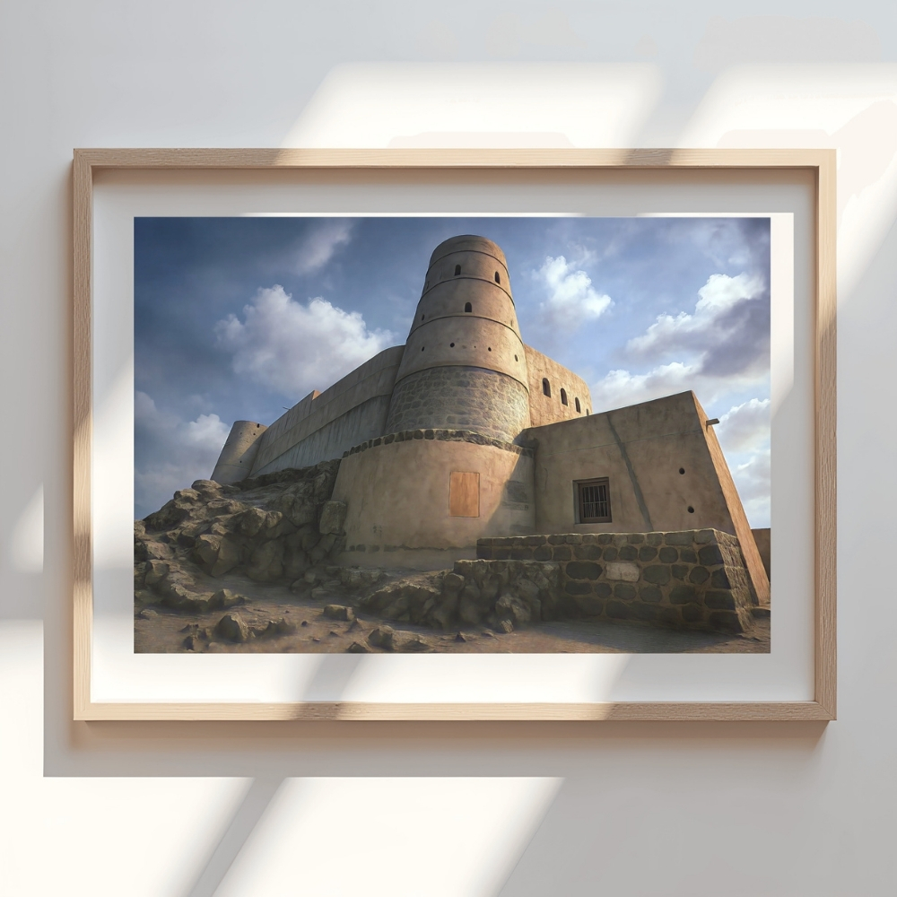لوحة فنية رقمية قابلة للطباعة (JPG ‎90×60 cm) تُجسّد مشهدًا مهيبًا لحصن بهلاء في سلطنة عُمان بأسلوب digital restoration art مستوحى من الأرشيفات العامة، يعكس عراقة العمارة الدفاعية العُمانية وهيبتها عبر القرون. • لوحة فنية مستوحاة من الأرشيفات العامة التي وثّقت حصن بهلاء، أُعيد تقديمها بأسلوب realistic digital painting يُبرز سماكة الجدران الطينية وتدرجات الضوء الطبيعي في المشهد. • تعكس تفاصيل Omani heritage architecture قوة الحصن ومكانته التاريخية، مع حضور بصري صامت يوحي بالحراسة الدائمة والارتباط العميق بالأرض والبيئة المحيطة. • تحتوي على لمسات فنية طفيفة من الإحياء الرقمي تشمل ضربات فرشاة رقمية دقيقة ومعالجات بصرية محدودة، قد ينتج عنها اختلافات بسيطة عن بعض التفاصيل المرجعية، دون المساس بروح الحصن أو مصداقية المشهد التاريخي. • مثالية لتزيين المكاتب، المجالس، الديوانيات، والمساحات الثقافية، حيث تضيف إحساسًا من Arabian heritage nostalgia وتعكس هوية العمارة العُمانية الأصيلة. • يمكن طباعتها بمقاسات متعددة ‎90×60‎، ‎70×50‎، ‎60×40‎، ‎45×30‎ بالإضافة إلى ‎A1–A4‎ لتناسب مختلف المساحات الفنية والمعارض التراثية. تنبيه: هذا منتج رقمي فقط، ولن يتم شحن أي منتج ملموس. Note: Digital product only – no physical item will be shipped.