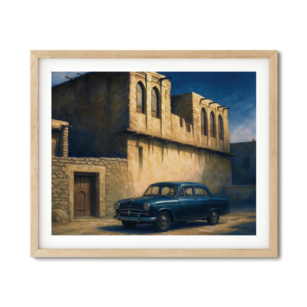 لوحة فنية رقمية عالية الجودة قابلة للطباعة (JPG 90×60 cm) تُجسّد مشهدًا هادئًا من أحد فرجان الدوحة القديمة، بأسلوب digital realistic restoration art مستوحى من الأرشيفات العامة التي وثّقت العمارة القطرية التقليدية في منتصف القرن الماضي. • عمل فني مستلهم من صور أرشيفية عامة لبيوت الدوحة الحجرية، أُعيد تخيّله بأسلوب realistic digital painting يبرز دفء الجدران الطينية وتفاصيل النوافذ المقوّسة والأبواب الخشبية العتيقة. • تعكس اللوحة الطابع المعماري التقليدي بواجهاته البسيطة وسماكاته الحجرية، مع حضور سيارة كلاسيكية تقف بهدوء في المشهد، لتجسّد مرحلة انتقالية بين الأصالة والبدايات الأولى للحداثة في قطر. • ينساب الضوء الذهبي على الجدران ليصنع تباينًا شاعريًا بين الظلال والملمس الحجري، في مشهد يبعث إحساس السكينة ويستحضر روح الحياة اليومية في أحياء الدوحة القديمة. تمت إعادة إحياء هذا المشهد عبر تقنيات الذكاء الاصطناعي والترميم الرقمي، مع الحفاظ على جوهره التاريخي وروحه الأصيلة. قد تظهر لمسات فنية طفيفة ناتجة عن الإحياء الرقمي مثل اختلافات دقيقة في بعض التفاصيل أو ملمس الأسطح أو ملامح العناصر البشرية عند التكبير، وهي سمات طبيعية في أعمال restoration art digital painting. هذه الفروقات لا تؤثر على صدقية المشهد أو قيمته التراثية، بل تعكس الطابع الفني لعملية إعادة التخيل الرقمي وتمنح العمل خصوصية بصرية مميزة بشفافية ومصداقية. • مثالية لتزيين المكاتب، المجالس، الديوانيات، المنازل، والمعارض الفنية، حيث تضيف طابعًا من الحنين القطري الأصيل وتستحضر ألوان الذاكرة في فرجان الدوحة القديمة. • متوفرة للطباعة بالمقاسات التالية: 90×60، 70×50، 60×40، 45×30 بالإضافة إلى A1–A4 لتناسب مختلف المساحات. يمكن طباعتها بمقاسات أكبر عند الطلب مع انخفاض طفيف جدًا في الجودة غير ملحوظ غالبًا عند العرض الجداري. تنبيه / Note تنبيه: هذا المنتج رقمي فقط، ستستلم ملفًا رقميًا عالي الجودة ولن يتم شحن أي منتج ملموس. Note: This is a digital product only. You will receive a high-resolution digital file. No physical item will be shipped.