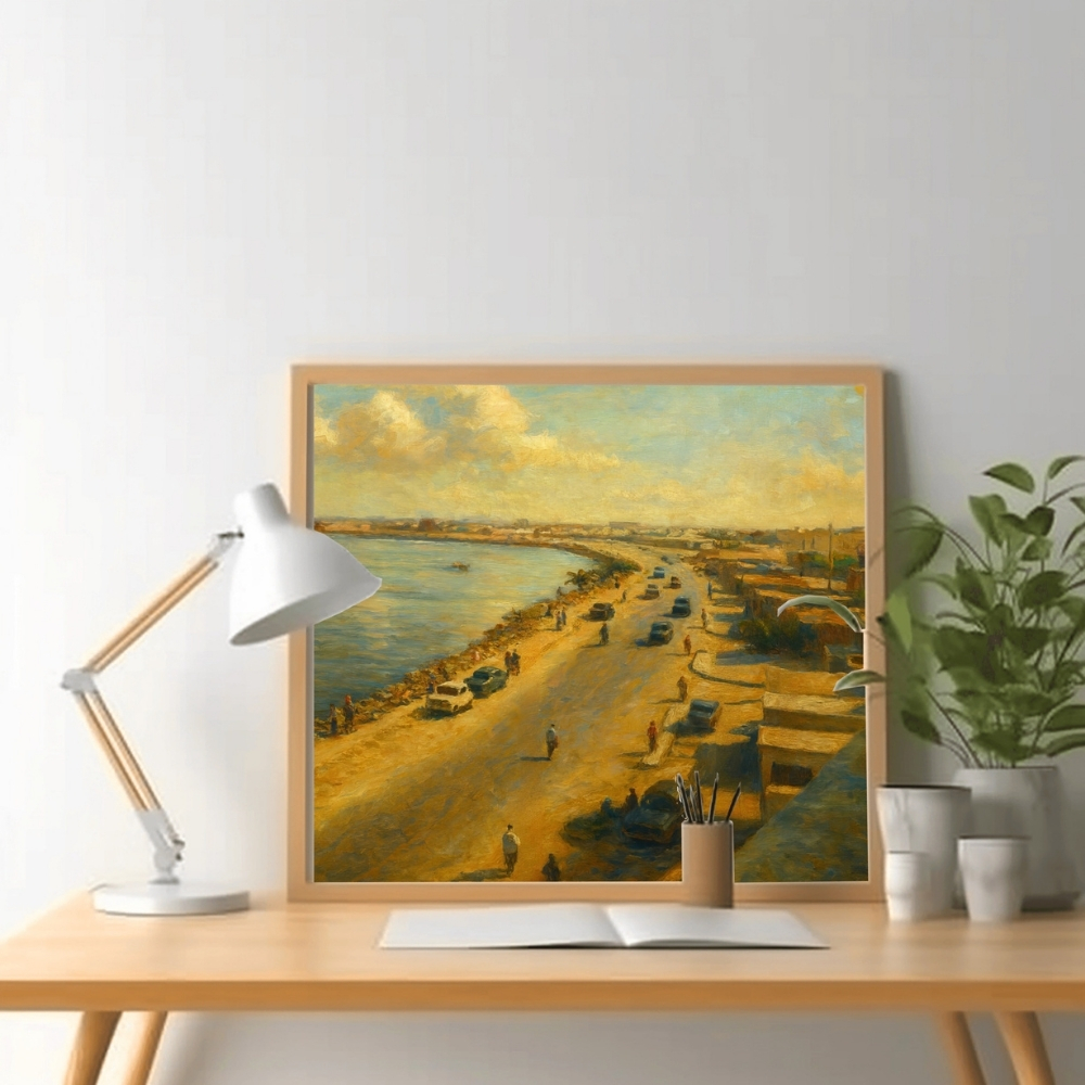 لوحة فنية رقمية عالية الجودة قابلة للطباعة (JPG 90×60 cm) تجسّد مشهدًا بانوراميًا لكورنيش الدوحة في خمسينيات القرن الماضي، بأسلوب digital realistic restoration art مستوحى من الأرشيفات العامة التي وثّقت بدايات تشكّل الواجهة البحرية للعاصمة القطرية. • عمل فني مستلهم من الصور الأرشيفية التاريخية لمدينة الدوحة، أُعيد تخيّله بأسلوب digital painting واقعي يمزج بين دفء الضوء الذهبي وانعكاسات البحر الهادئة في تكوين بصري نابض بالحنين. • يُبرز المشهد الطريق الساحلي القديم بمحاذاة الخليج، حيث تتناثر السيارات الكلاسيكية، ويتحرك الأهالي بين البيوت البسيطة والأسطح الطينية، في لقطة إنسانية تعكس تفاصيل الحياة اليومية القطرية في منتصف القرن العشرين. • تلتقي العمارة التقليدية منخفضة الارتفاع مع البحر المفتوح وقوارب الصيد الصغيرة، بينما تنسدل السماء بضوء غروب دافئ يضفي على المكان إحساسًا بالسكينة والاتساع. تمت معالجة هذه اللوحة عبر تقنيات الإحياء والترميم الرقمي بالذكاء الاصطناعي، وقد تظهر لمسات فنية طفيفة أو اختلافات بسيطة في بعض التفاصيل الدقيقة كملامح الأشخاص أو حواف العناصر، وهي ناتجة عن طبيعة التوليد والترميم الرقمي. هذه اللمسات تُعد جزءًا من الطابع الفني للعمل وتعزز إحساس اللوحة بأنها digital restoration painting بروح معاصرة، دون أن تمس الجوهر التاريخي للمشهد أو صدقيته البصرية. فالصورة في مجملها تنقلك بصدق إلى ذاكرة الساحل القطري وتفاصيله الأصيلة. • مثالية لتزيين المكاتب، المجالس، الديوانيات، المنازل، والمعارض الفنية، حيث تضيف طابعًا تراثيًا قطريًا يعكس تاريخ الدوحة البحري وتحولاتها العمرانية المبكرة. • تتوفر للطباعة بمقاسات 90×60، 70×50، 60×40، 45×30 بالإضافة إلى A1–A4، ويمكن طباعتها بمقاسات أكبر عند الطلب مع انخفاض طفيف جدًا في الجودة قد لا يكون ملحوظًا بصريًا. تنبيه: هذا منتج رقمي فقط، ستستلم ملفًا رقميًا عالي الجودة ولن يتم شحن أي منتج ملموس. Note: This is a digital product only. You will receive a high-resolution digital file. No physical item will be shipped.